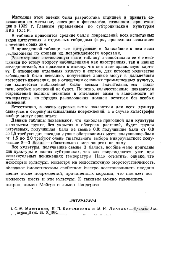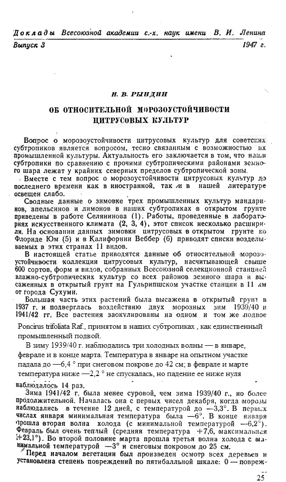 1947, Об относительной морозоустойчивости цитрусовых культур